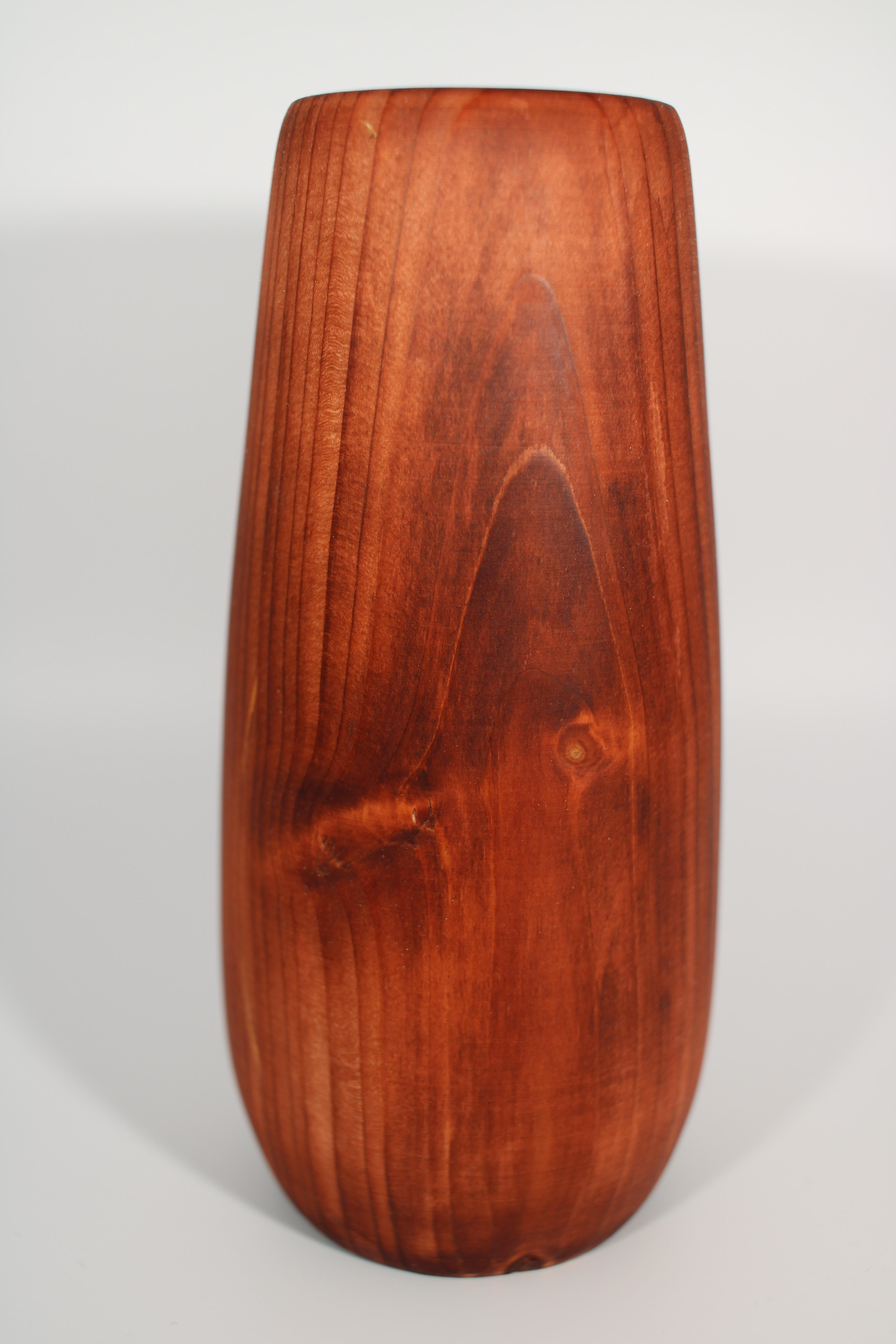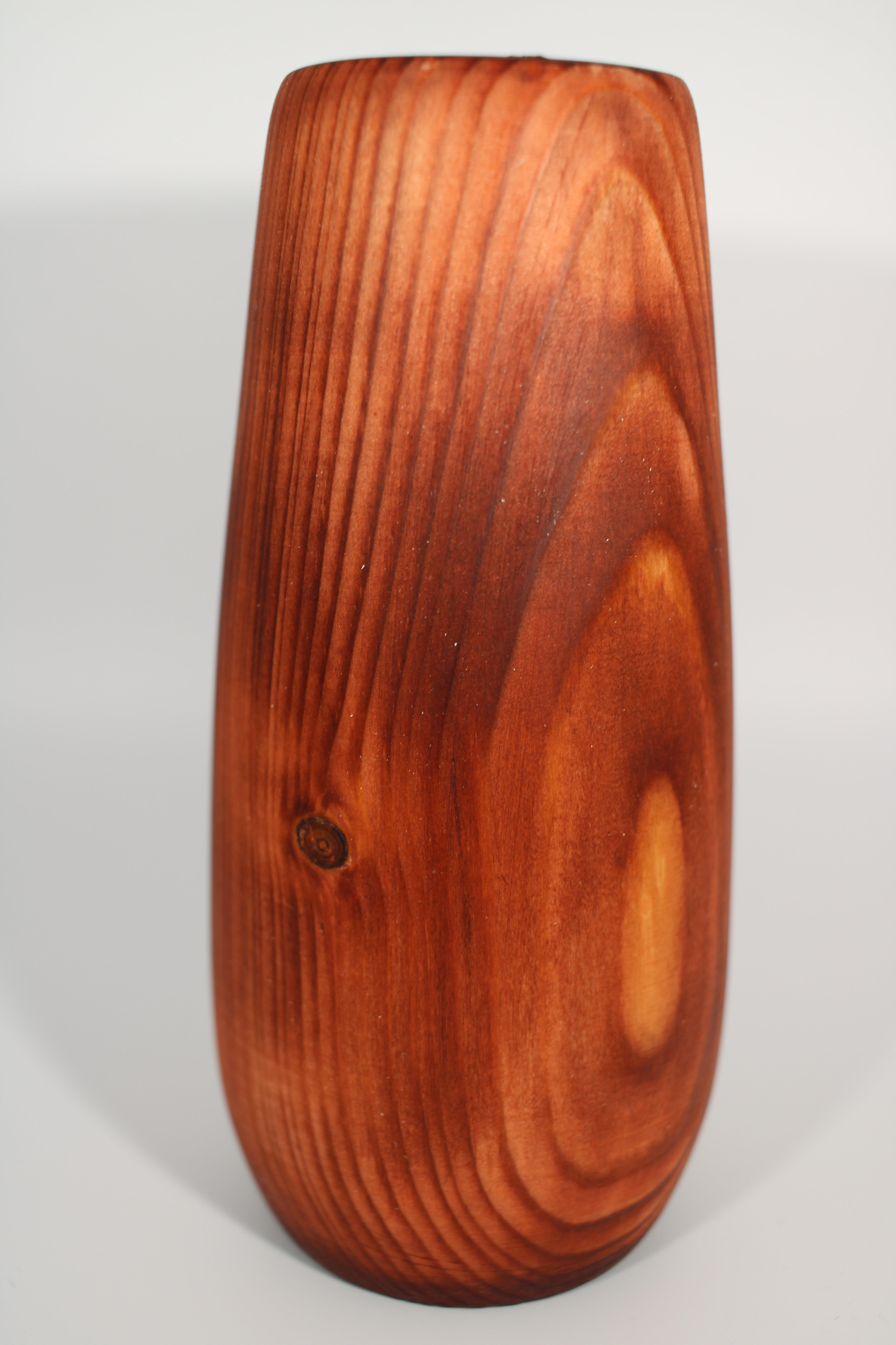 Holzvase Mahagoni Farbe: Mahagonie gebeizt Holzart: Fichte Maße/ cm: L= 18, D= 5,3 / Lochdurchmesser: 3cm Gewicht/ g: 210 Sonstiges: ohne Glaseinsatz/ nicht für Frischblumen/ Holz ist gewachst