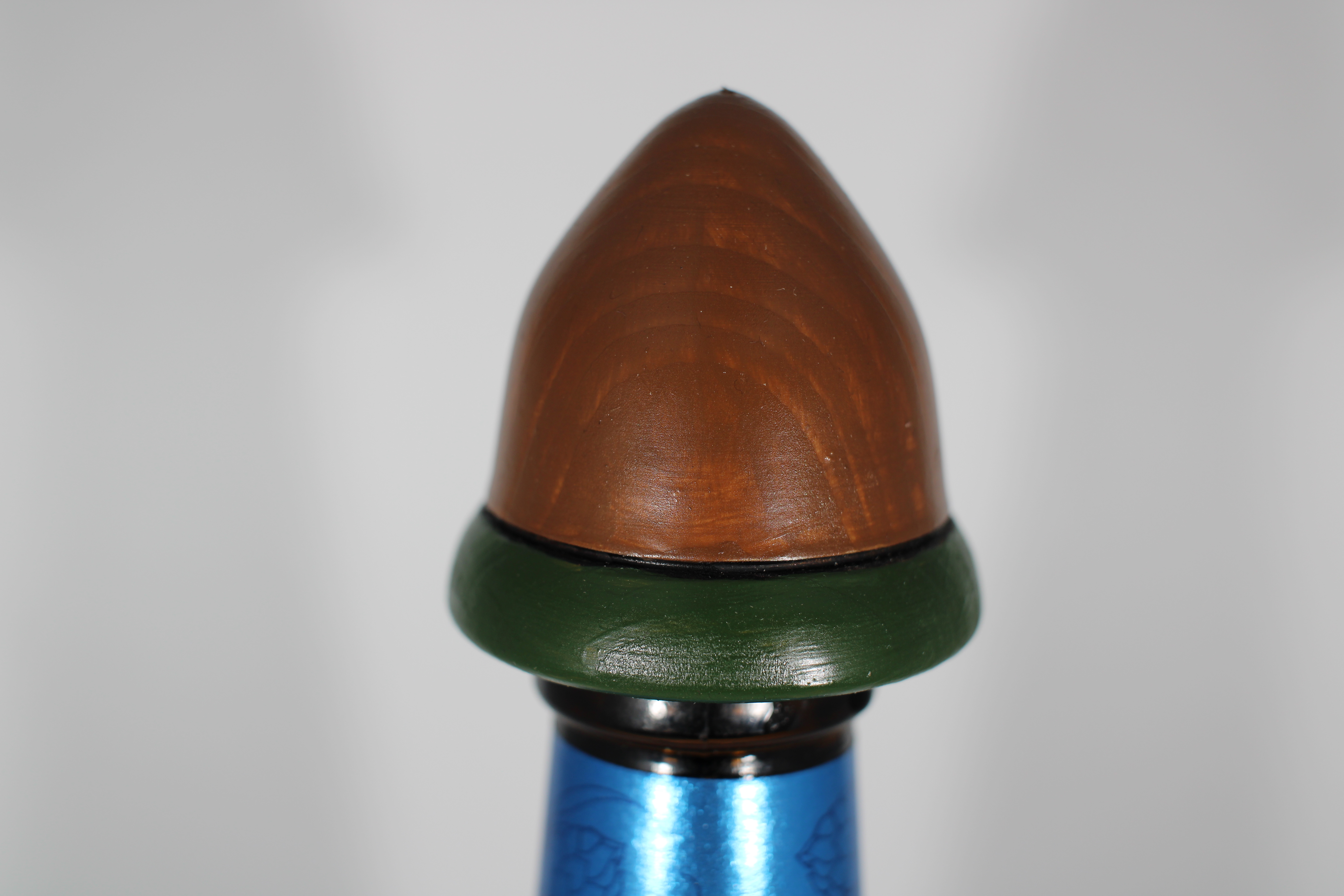 Holz mit Klarlack lackiert. Der Hut schützt Bierflaschen im Sommer z.B. vor Wespen.