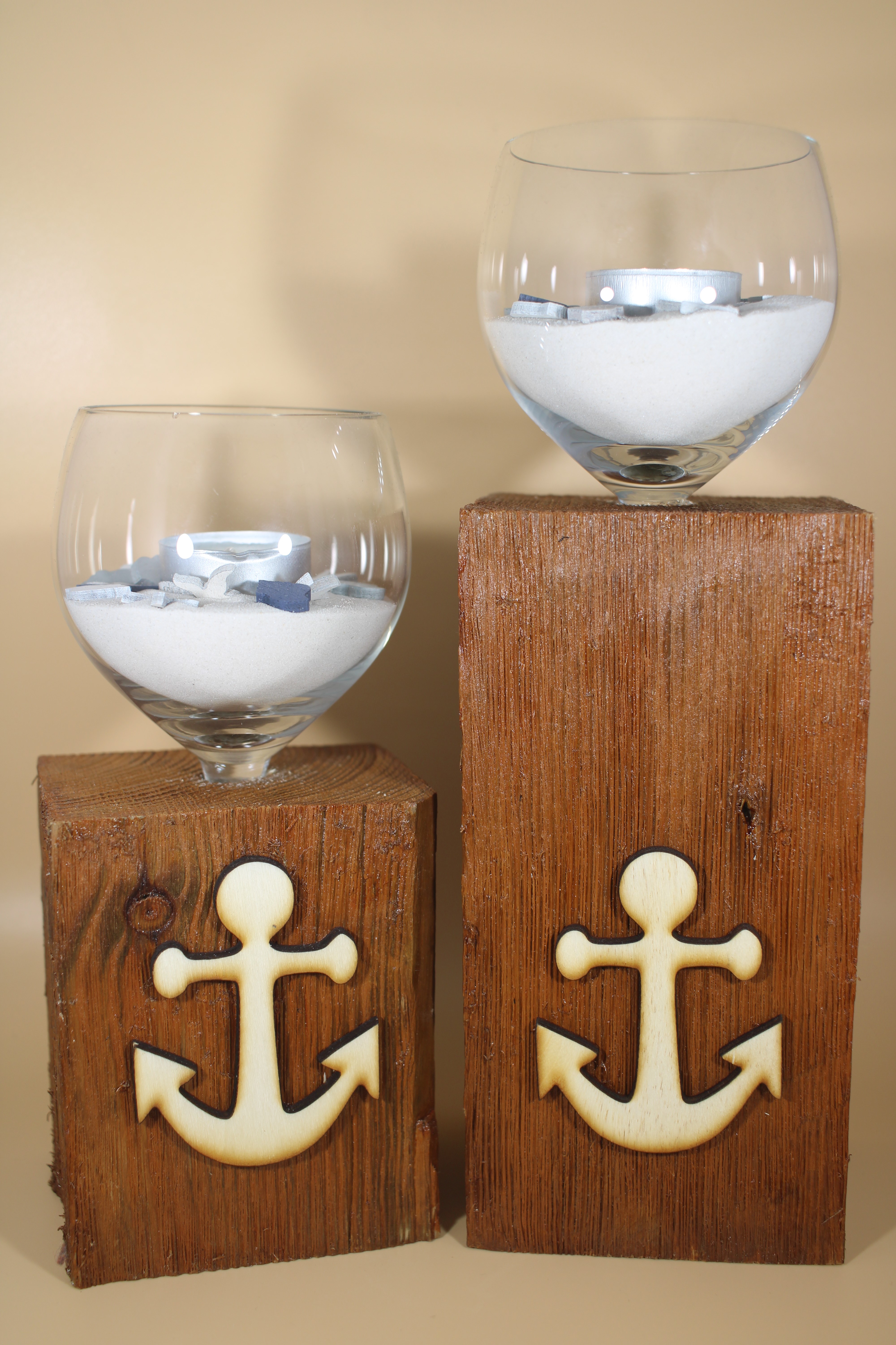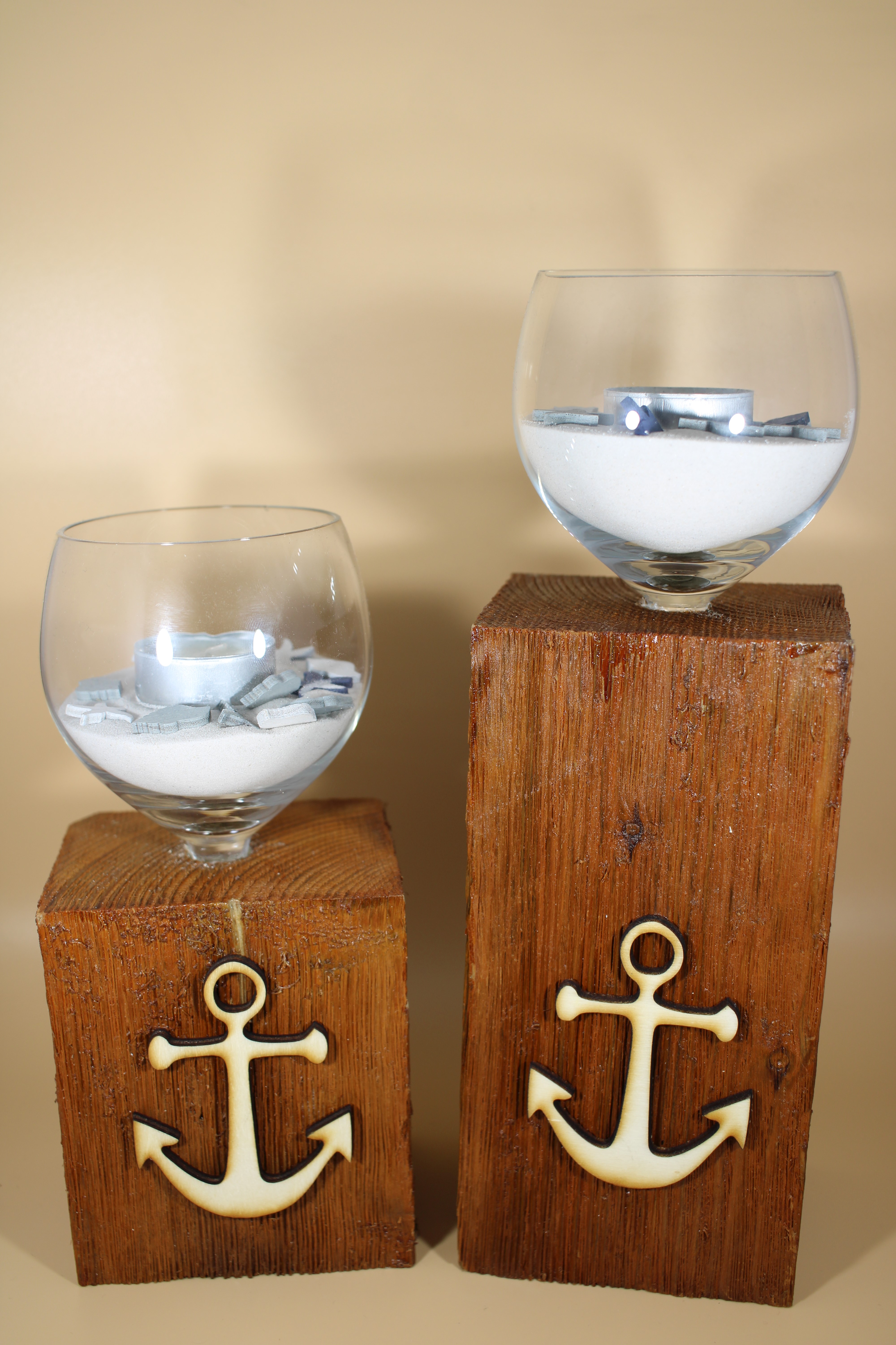 Teelichhalter Glas mit Anker 2er Set