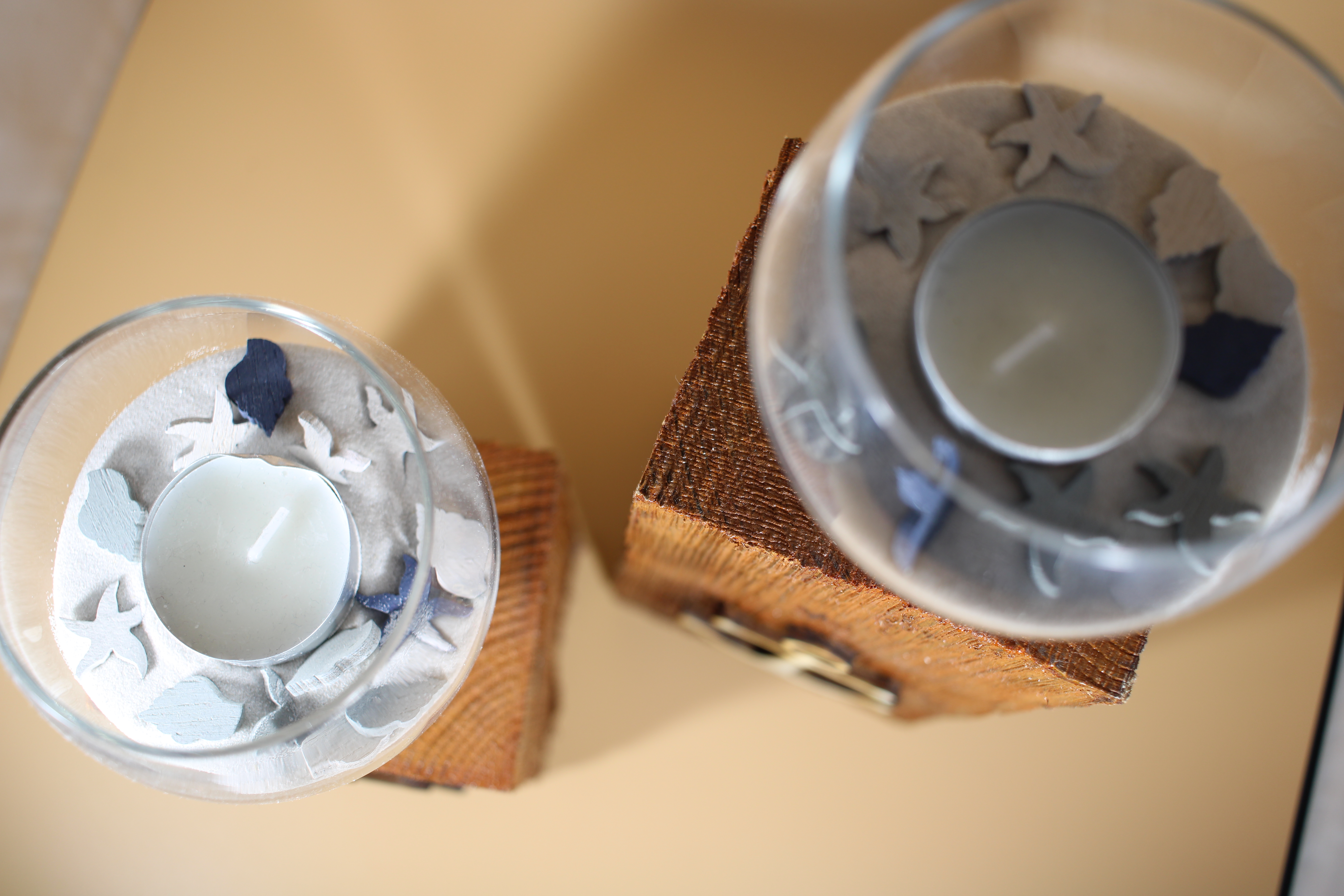 Im Verkaufsumfang ist der Sand in den Gläsern und zwei passende Teelichter.