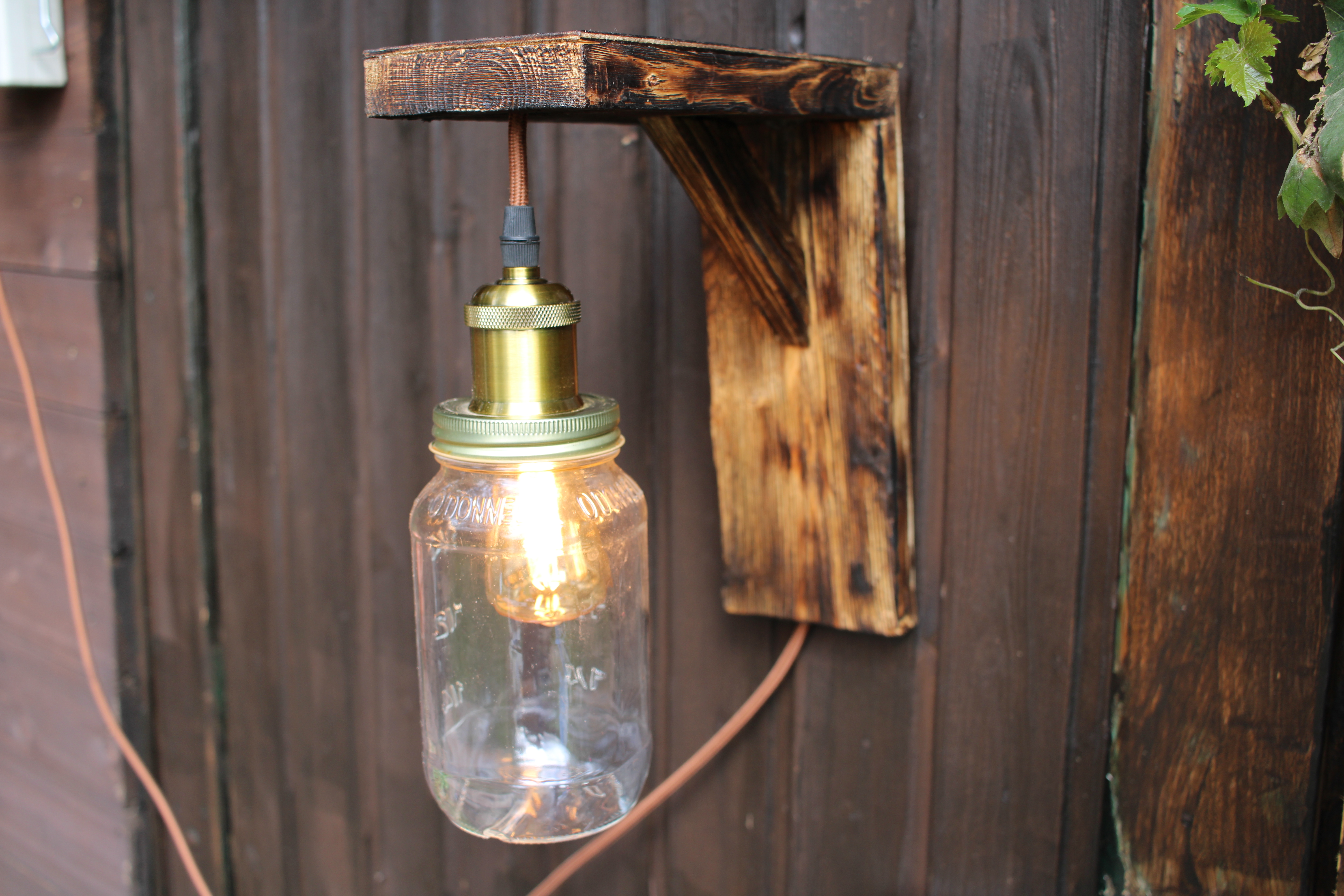 Das Holz ist angeflammt und mit Klarlack lackiert.